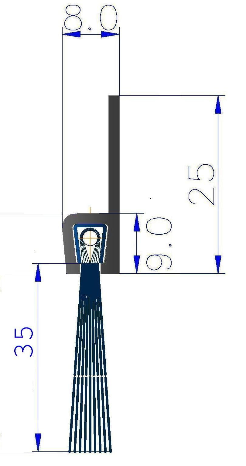 Uszczelnienie szczotkowe prosta h5 35 mm do luk, szpar, prześwitów